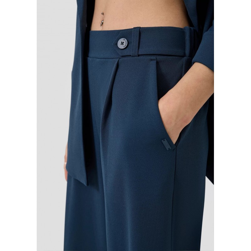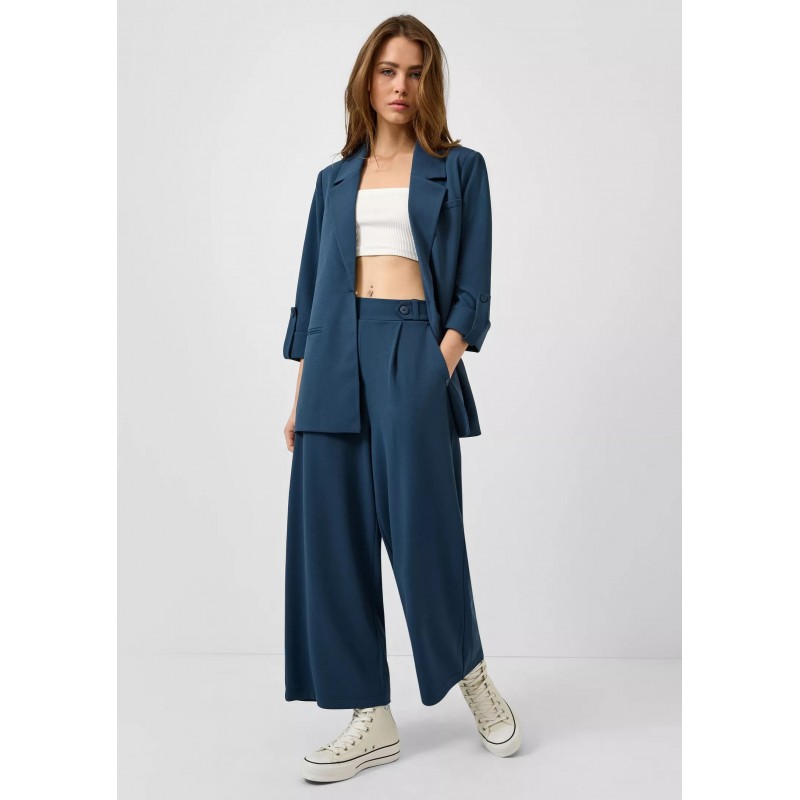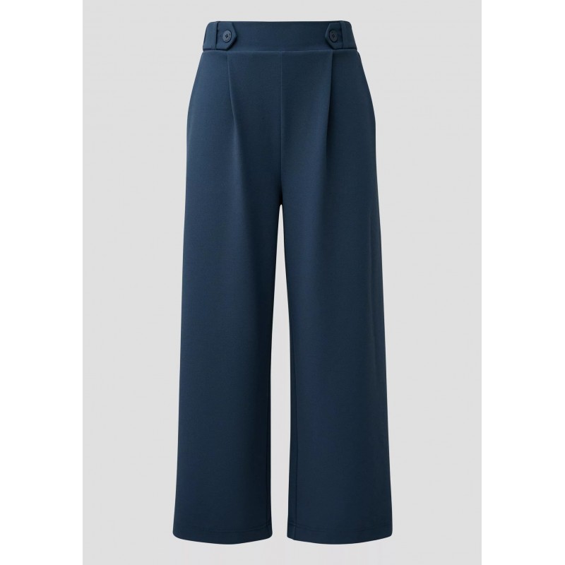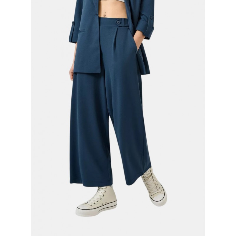 Pantalón culotte para mujer de cintura elástica de talle alto con botón decorativo, bolsillos laterales y bajo ancho.