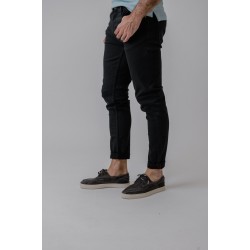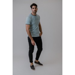 Pantalón de licra cinco bolsillos. Con pespunte en azul claro.