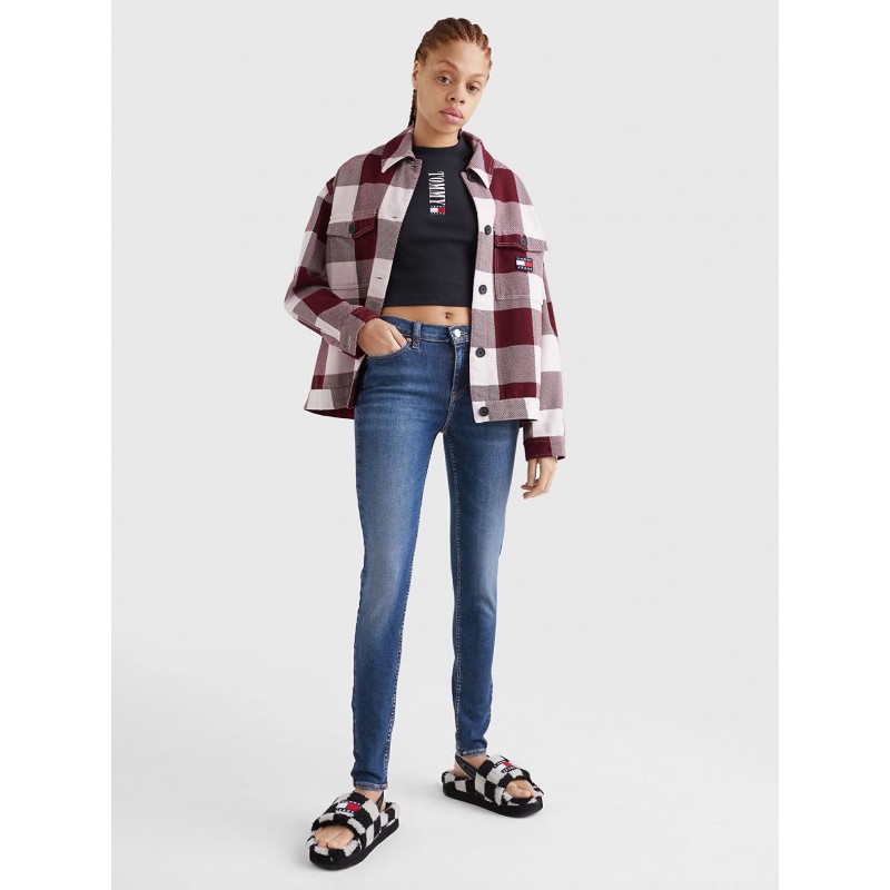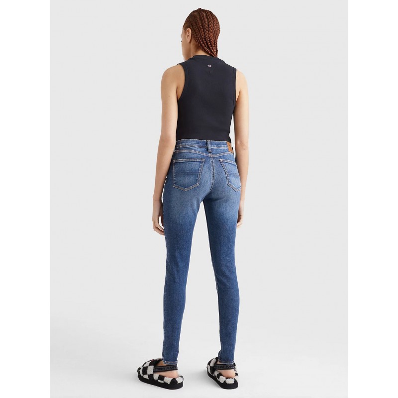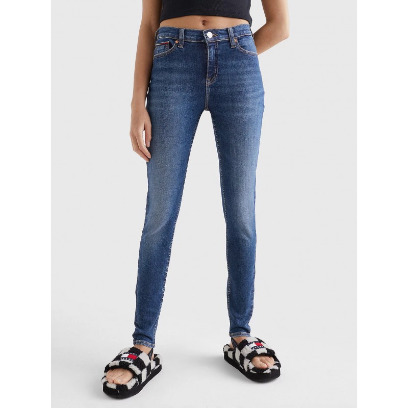 Pantalón denim ceñidos están confeccionados en un cómodo tejido denim elástico y presentan un efecto desteñido de inspiración vintage. Tiene cinco bolsillos y detalles distintivos de Tommy Hilfiger. Parche con el logo de Tommy Jeans en el bolsillo trasero.