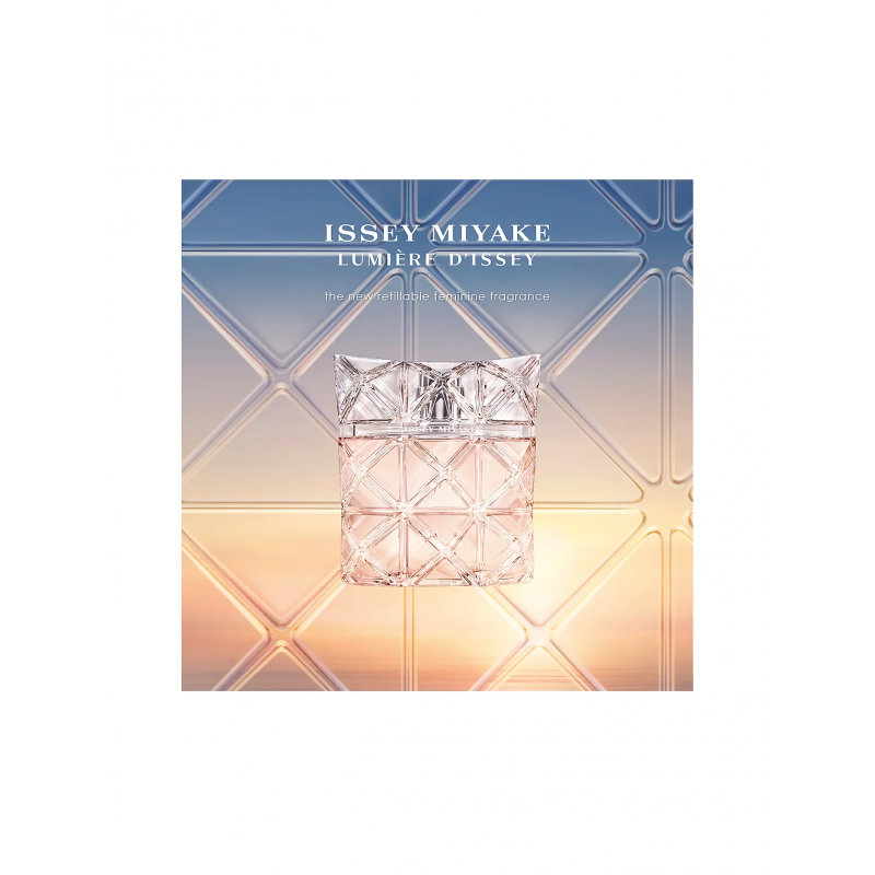 Esta radiante Eau de Parfum captura el poder de la luz en una fragancia floral ambarina adictiva. La mandarina verde de origen natural abre la composición con una frescura chispeante. En el corazón, un acorde solar de flor de naranjo proporciona un aura luminosa. Un cálido acorde de madera de pistacho se fusiona con un sándalo cremoso y sensual. Con un 90 % de ingredientes de origen natural, incluido alcohol francés 100 % de origen natural. Con certificación vegana. Un diseño de frasco que muestra la luz en movimiento El diseño prismático crea un efecto caleidoscópico en un cálido tono rosado del amanecer. Fabricado en Francia con un 15 % de vidrio reciclado, el frasco transparente es recargable. El embalaje a juego muestra recortes triangulares con un fondo plateado que recuerdan a la luz que explota.