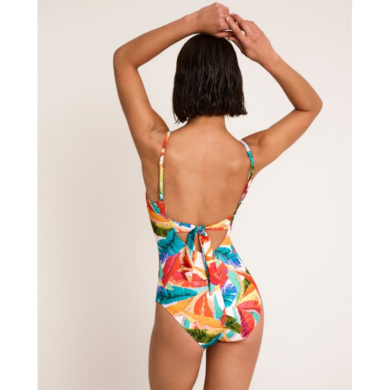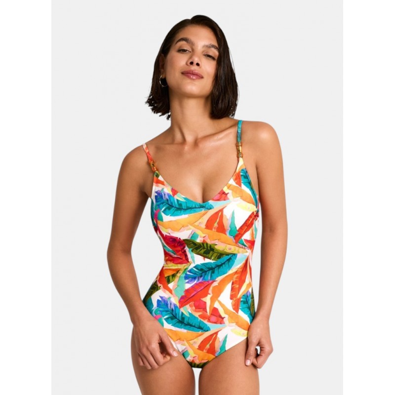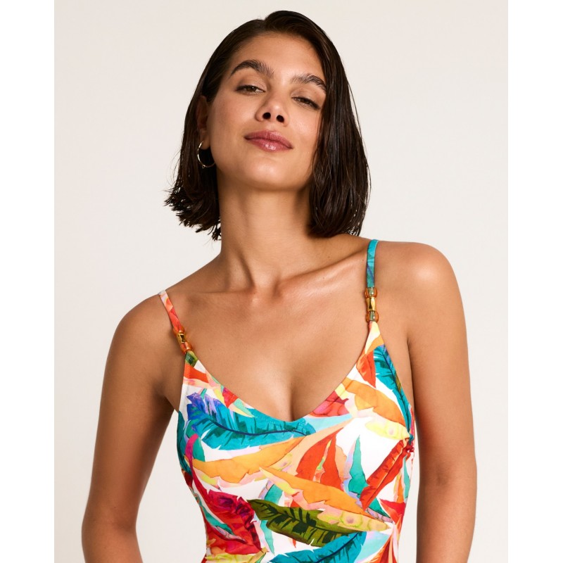 Bañador moldeador con foam y sin aro. Con tirantes multiposición. Inspirado en la naturaleza exuberante, este estampado tropical es perfecto para escapadas al sol y momentos junto al agua.