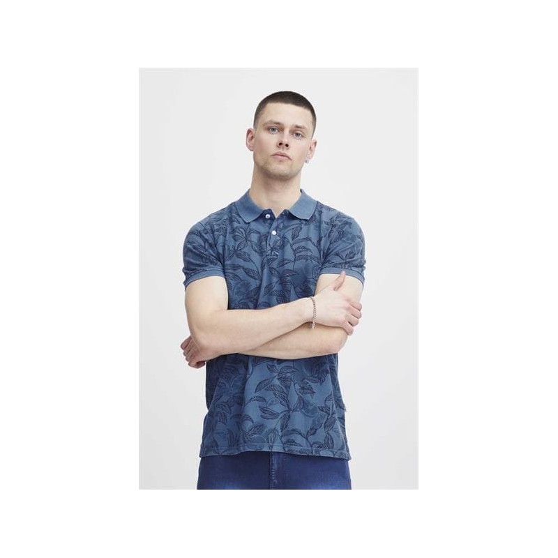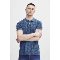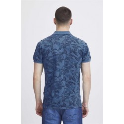 Polo piqué para hombre de estampado de hojas, tapeta dos botones, detalles del logo y manga corta.