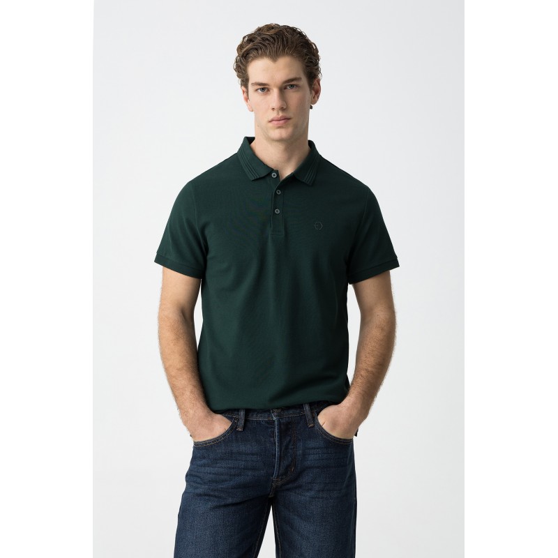 Polo slim fit para hombre. Con cuello solapa y manga corta. Cierre de botones en la parte delantera. Fondo con aberturas laterales.