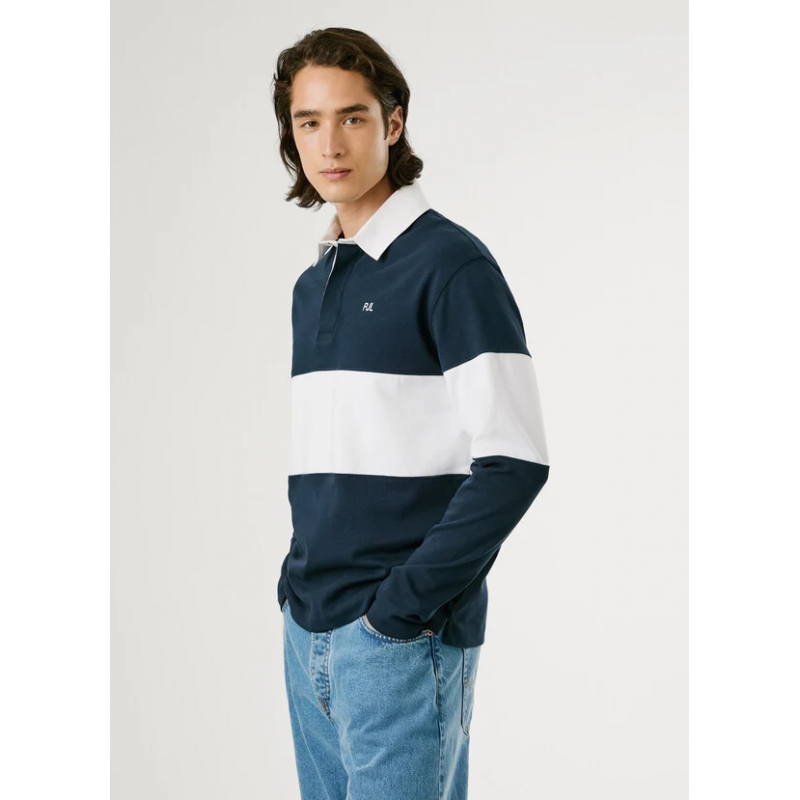Polo de manga larga para hombre. Regular fit. Cuello en contraste de colores. Tapeta oculta de tres botones. Diseño de rayas anchas bicolor. Logo PJL bordado en el pecho.