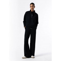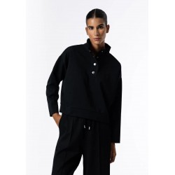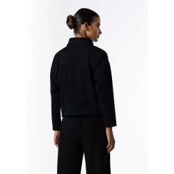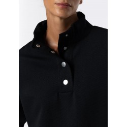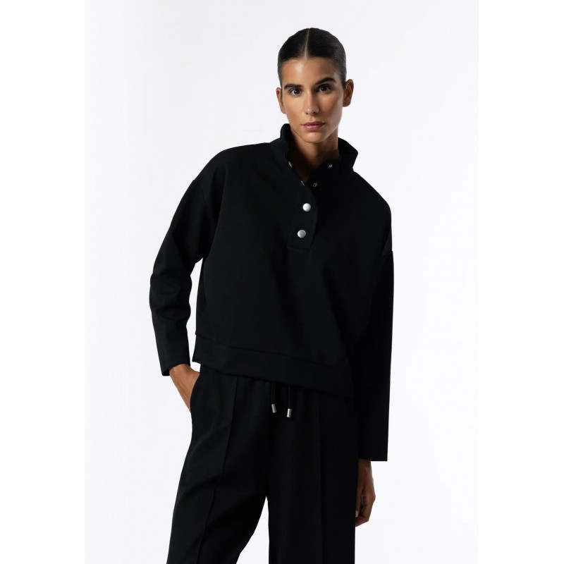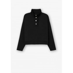 Sudadera para mujer con cuello alto, cierre frontal con automáticos en el escote, acabados en canalé y manga larga.
