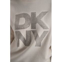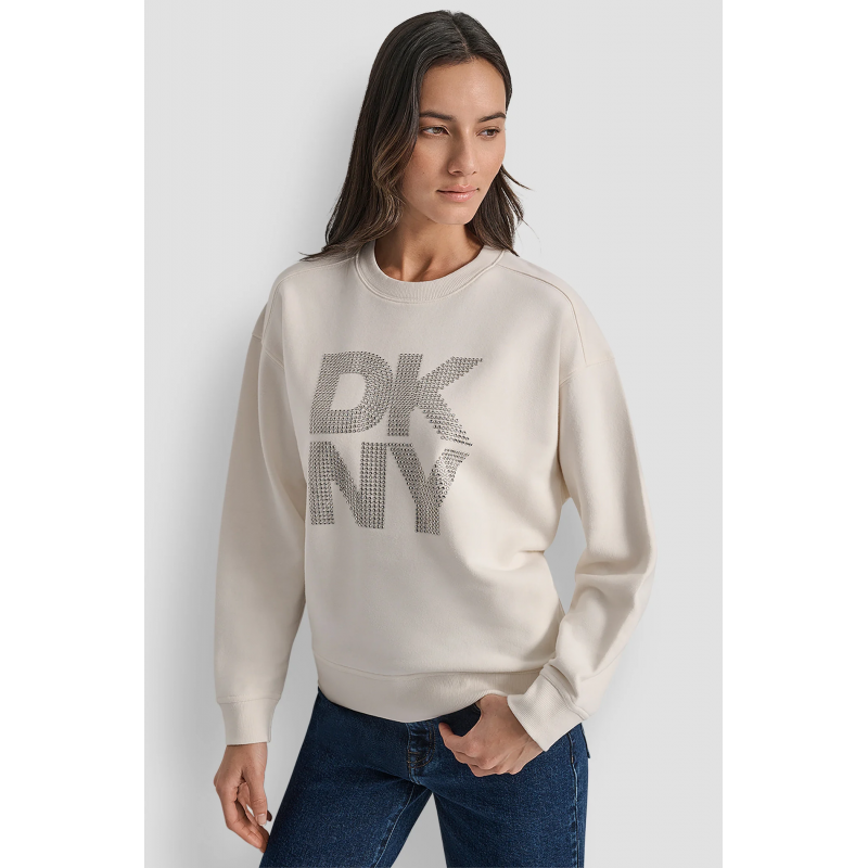 Sudadera con cuello redondo para mujer. Mangas largas y hombros caídos y logo apilado con cristales. Pull-over.