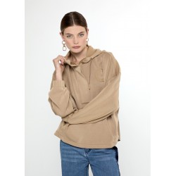 Sudadera con bolsillo delantero para mujer. Logo frontal. Cremallera en tapeta y cordón ajustable en la capucha. Detalle espalda con tejido y corte voluminoso.