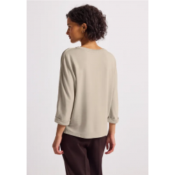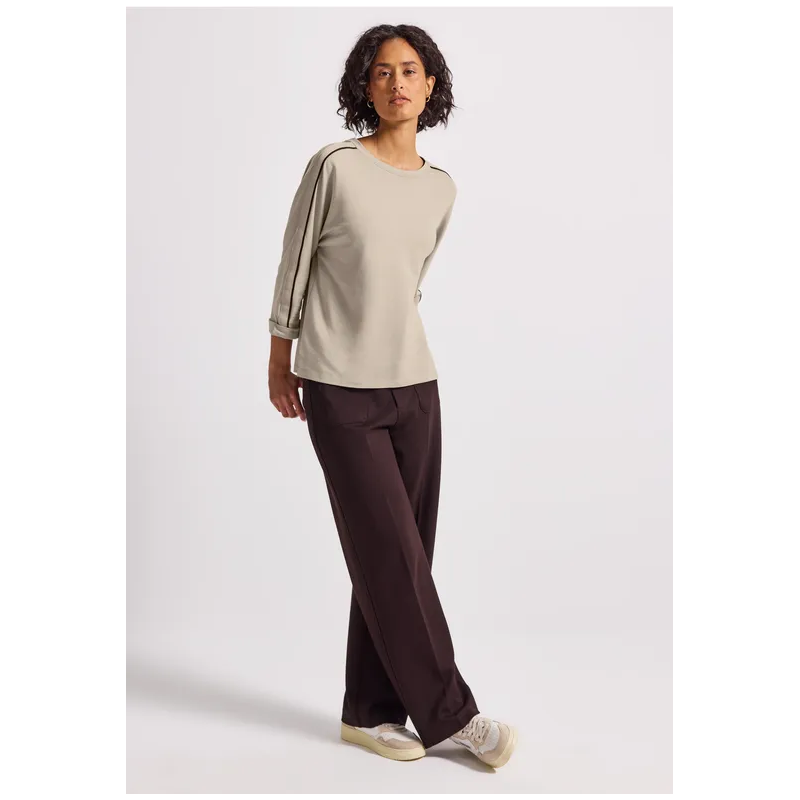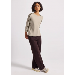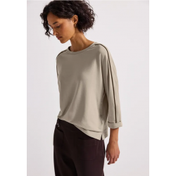 Sudadera con cuello barco para mujer. Con ribetes decorativos en las mangas 3/4. El suave tejido de jersey, confeccionado en una mezcla de algodón y modal con elasticidad, garantiza un ajuste especialmente cómodo. Las aberturas laterales en el bajo completan su look femenino con un toque informal.