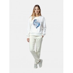 Sudadera para mujer diseñada con un corte holgado, presenta cuello redondo y mangas largas para un uso diario cómodo. El llamativo estampado floral en la parte delantera le aporta un toque femenino y moderno, convirtiéndola en una prenda versátil tanto para un estilo casual como para un look elegante.