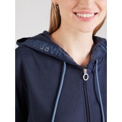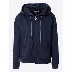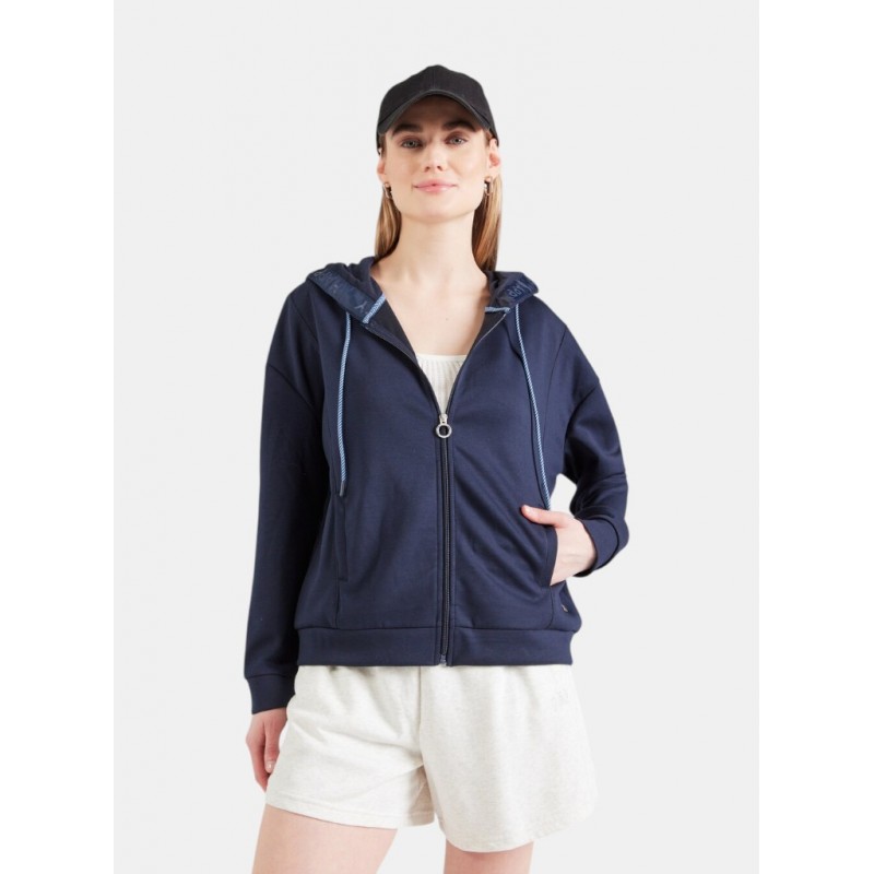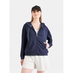 Sudadera para mujer de capucha ajustable con cordón, cierre de cremallera y bajo más mangas largas acanaladas.