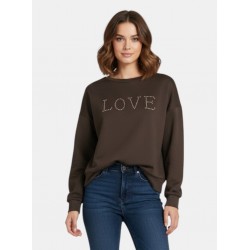 Sudadera para mujer de diseño de tachuelas con la palabra "LOVE" , cuello redondo y manga larga.