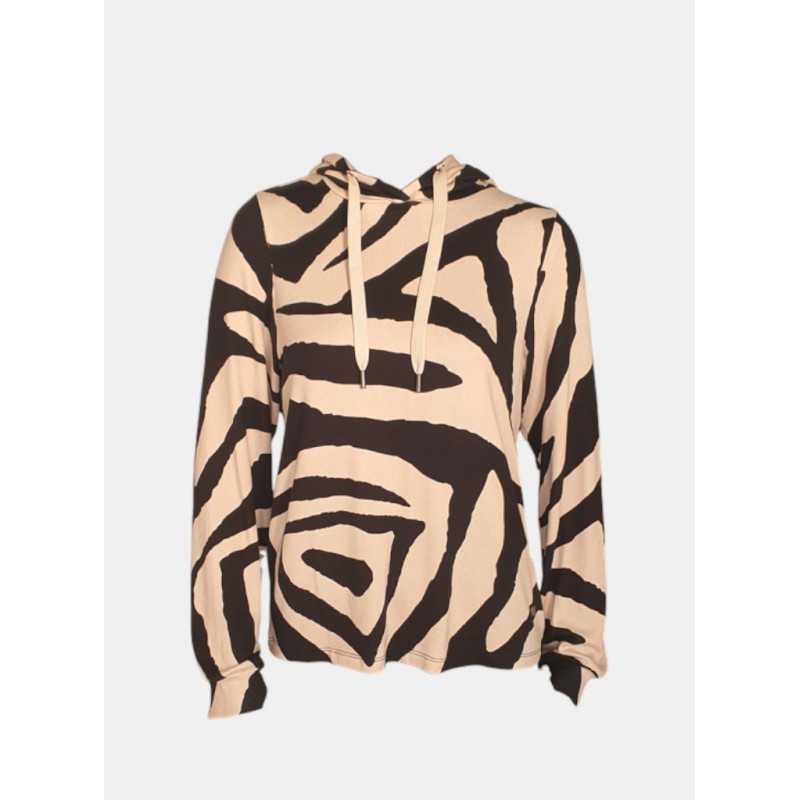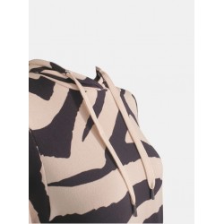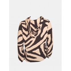 Sudadera ligera para mujer de estampado animal print, capucha ajustable con cordón y mangas largas.