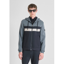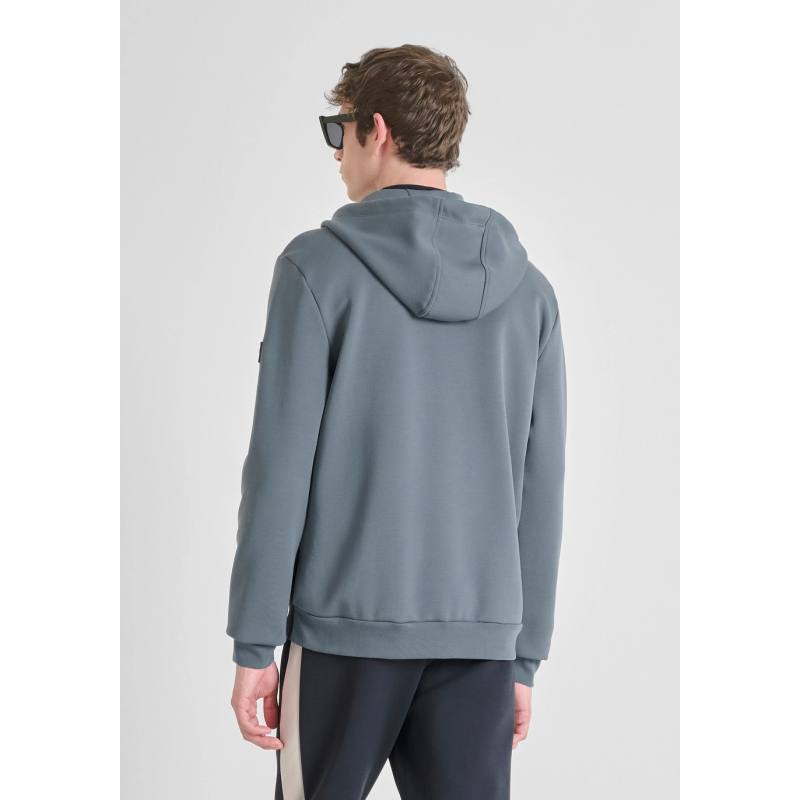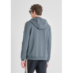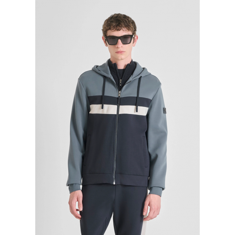 Sudadera con capucha para hombre. Cierre de cremallera central. Confeccionada en mezcla de algodón en colores alternativos, puños y bajo de punto elástico y cordones para ajustar la capucha. Dos bolsillos laterales de ribete. Una prenda versátil para combinar con tus vaqueros favoritos y lograr un look casual con un toque noventero. Pequeña insignia de goma con el logo.