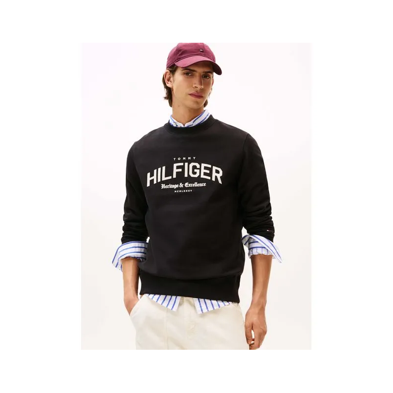 Sudadera estampada para hombre. Cuello redondo. Logo arqueado de Tommy Hilfiger en el pecho. Corte regular.