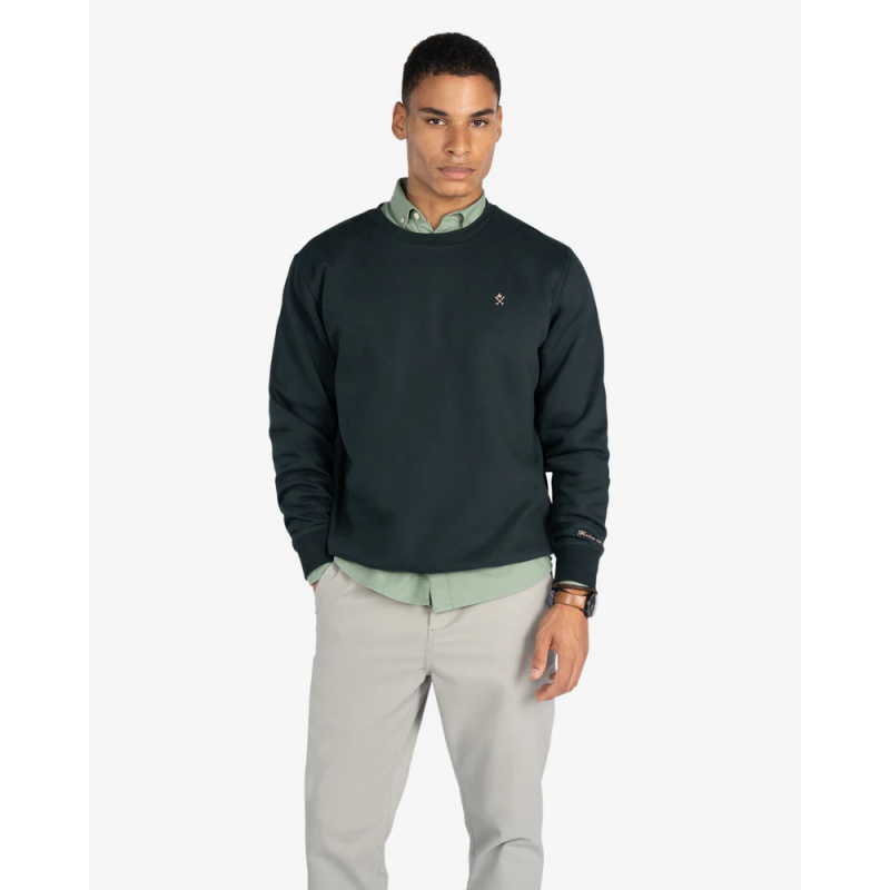 Sudadera basica para hombre. Con cuello redondo y logo bordado en el pecho. Confeccionada en mezcla de algodón perchado de alta calidad, presenta un diseño limpio, minimalista y elegante. El icónico logotipo se convierte en el único protagonista, añadiendo identidad con discreción. Su corte recto y puños elásticos aseguran comodidad y estilo duradero.