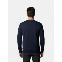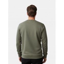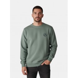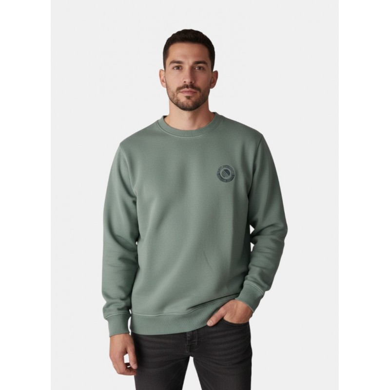Sudadera regula fit para hombre de detalle bordado en el pecho como un sello a contraste, cuello redondo más la parte baja y los puños de sus mangas largas ribeteadas.