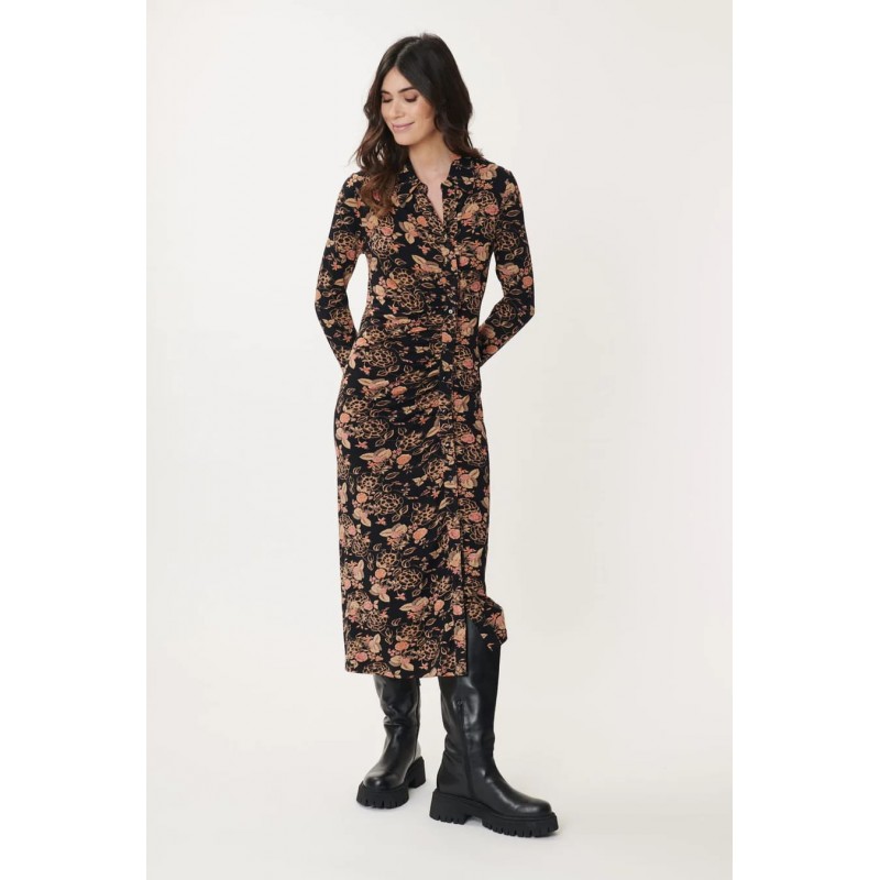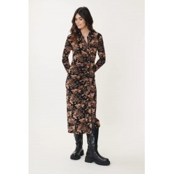 Vestido camisero de manga larga en punto de lycra viscosa estampado.