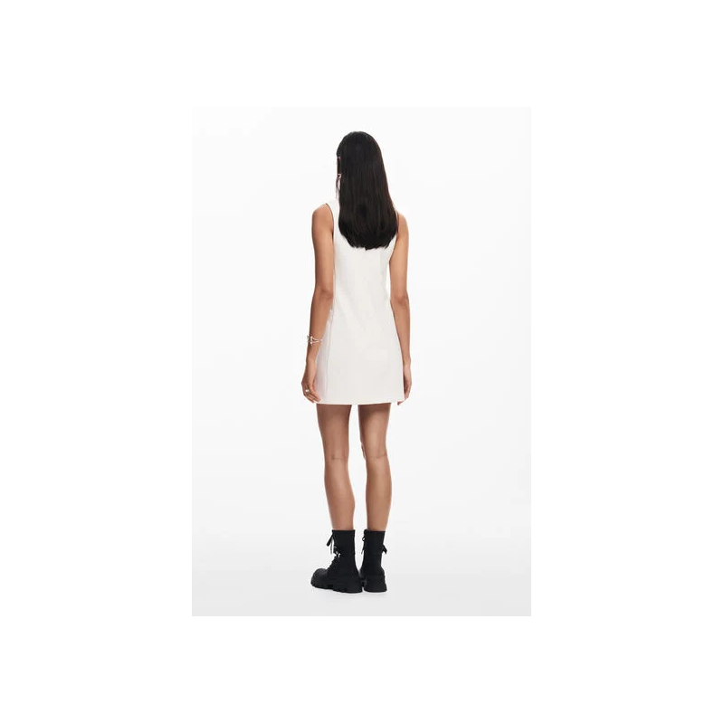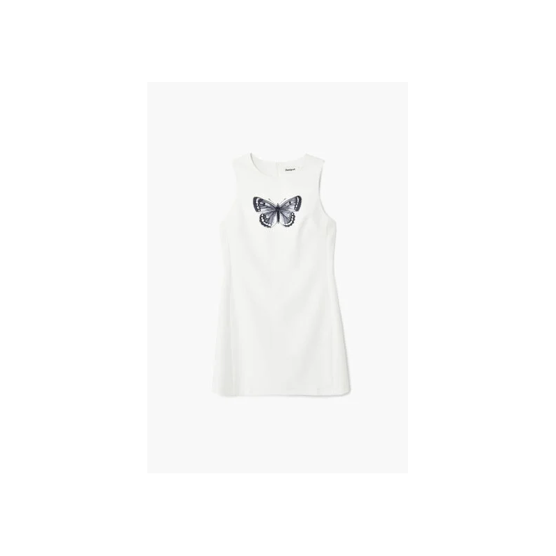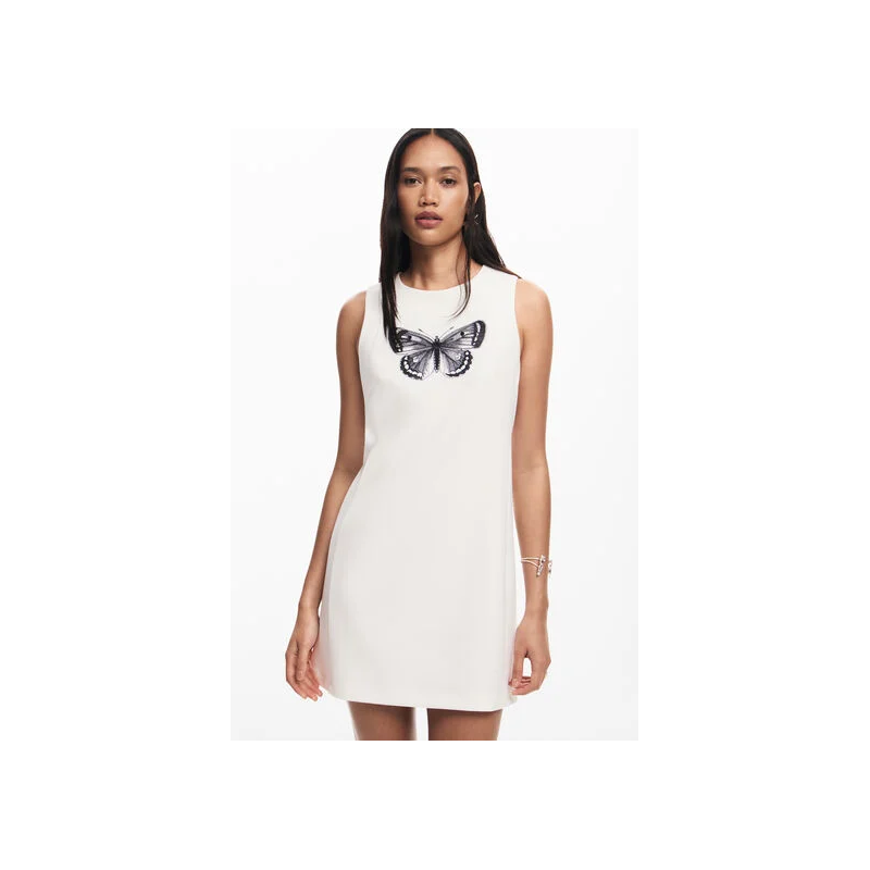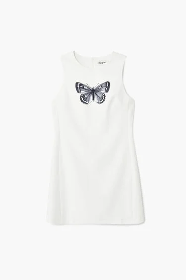 Vestido midi slim fit para mujer de estampado de mariposa, cuello redondo, sin mangas y cierre de cremallera.