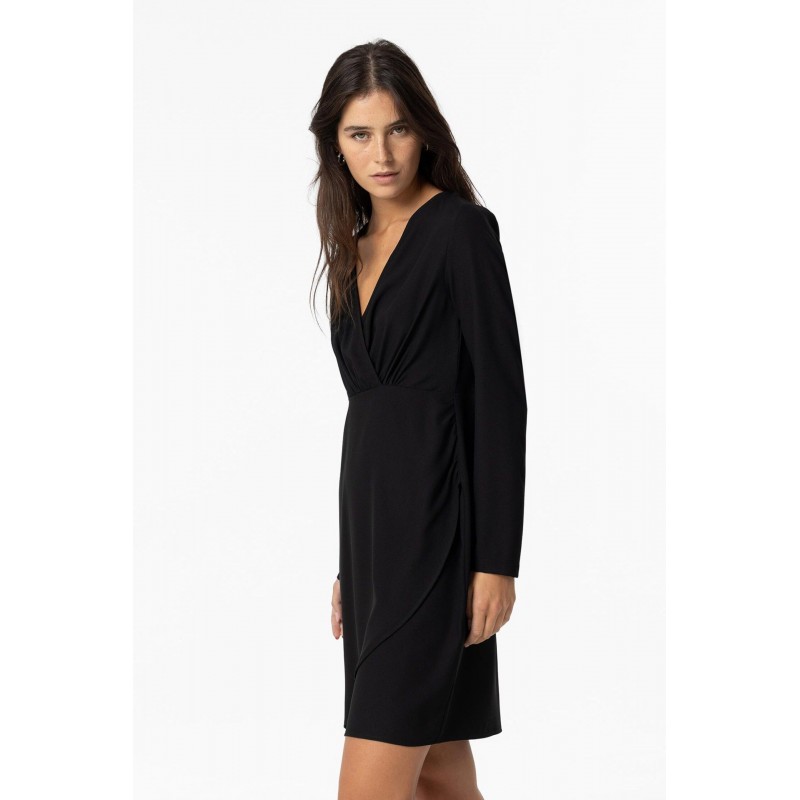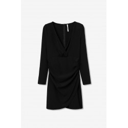 Vestido de escote cruzado para mujer.Manga larga. Detalle frunces laterales. Cierre trasero con cremallera oculta en costura.