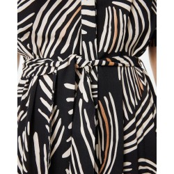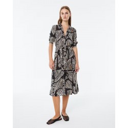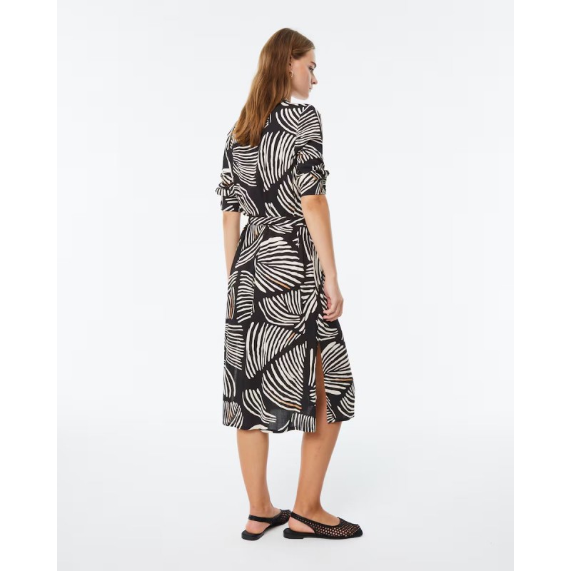 Vestido camisero estampado para mujer de cuello camisero, escote en pico, cierre con botones bajo sopata, cinta a juego para ajustar, aberturas laterales y manga de puntos francesa con puño.