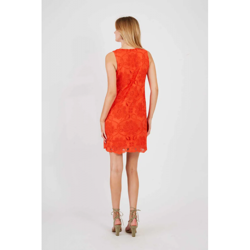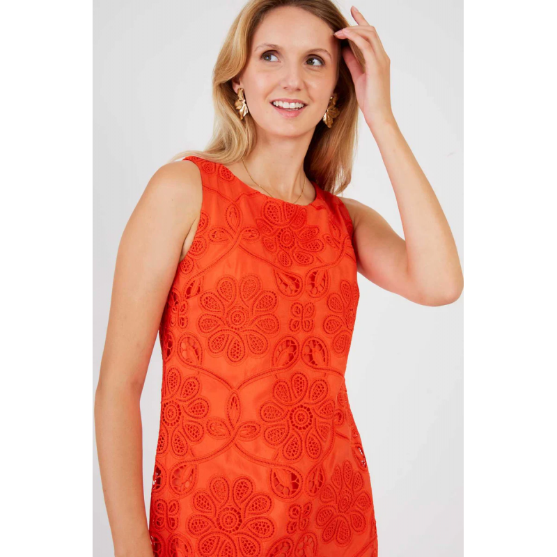 Vestido tubo sin mangas para mujer.Escote redondo. Motivo floral bordado en relieve. Recorte de encaje floral calado que crea un sutil efecto transparente. Este vestido con su corte elegante y su bordado sofisticado es perfecto para una noche de verano chic.