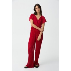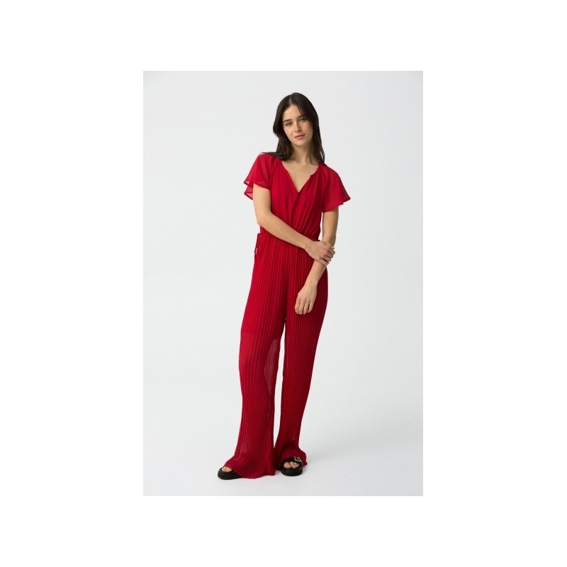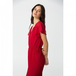 Mono largo para mujer. Manga corta. Escote en pico. Cinturón del mismo tejido. Efecto plisado.