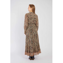 Vestido largo para mujer. Mangas largas con puños fruncidos y cintura fruncida para realzar la silueta. El cuello mao con lazo delantero le da un toque femenino.