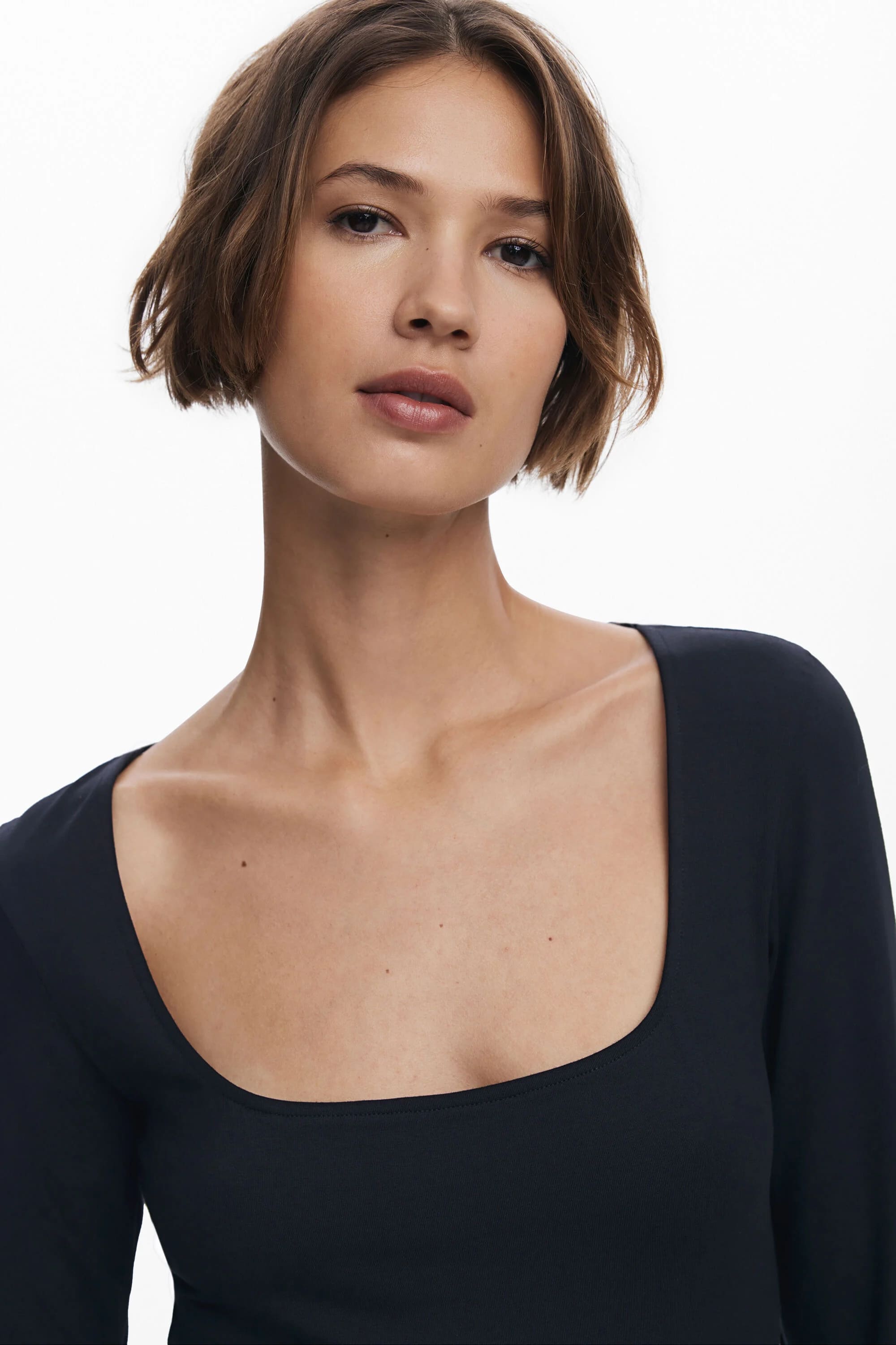 La modelo mide 180 cm y usa una talla S