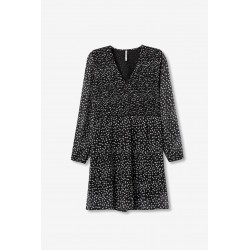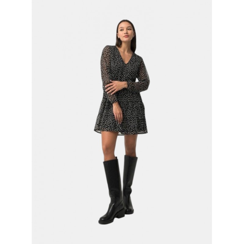 Vestidos regular fit para mujer de cuello en pico, con volante, cierre de cremallera lateral y manga larga con puños elásticos