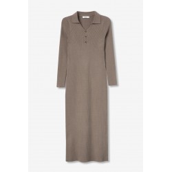 Vestido midi para mujer. De manga larga. Tejido de canalé con cuello y botones en el escote. Silueta ajustada que realza la figura.