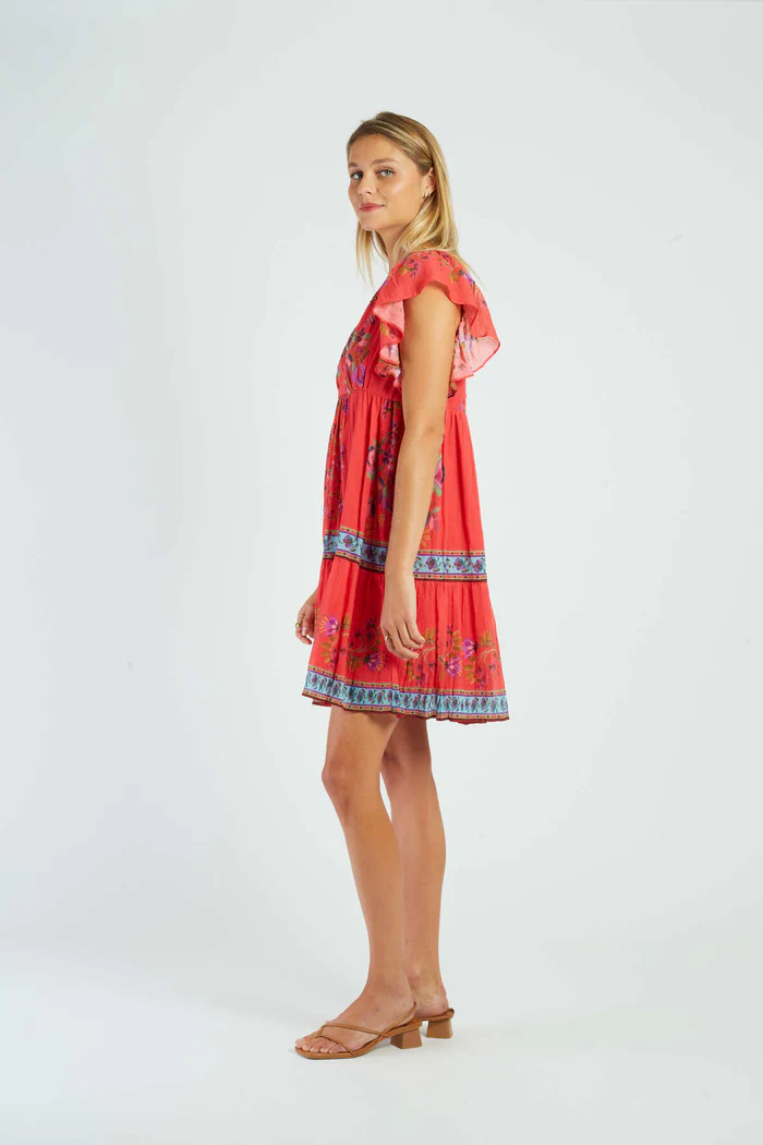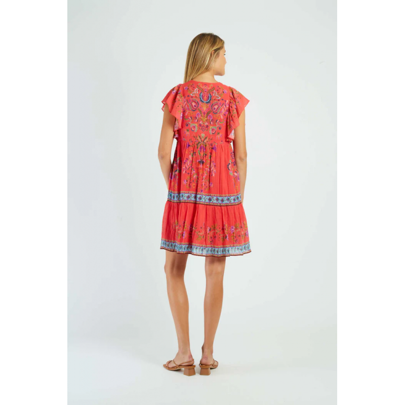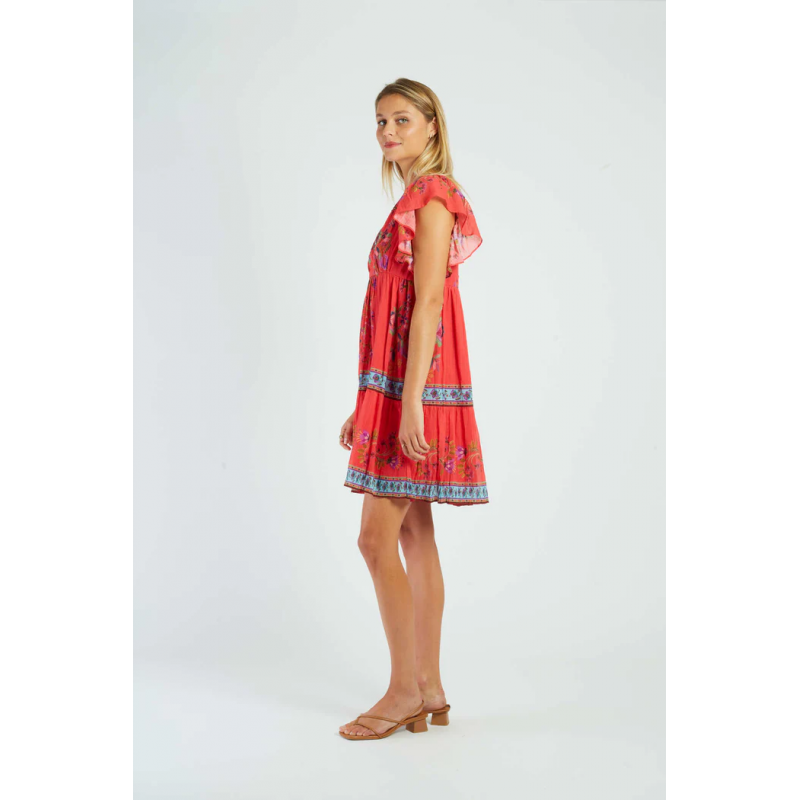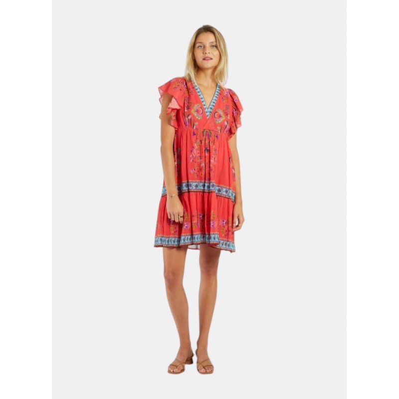 Vestido de manga corta con escote en V y estampado floral. Corte acampanado con cintura definida. Un vestido informal perfecto para el buen tiempo.